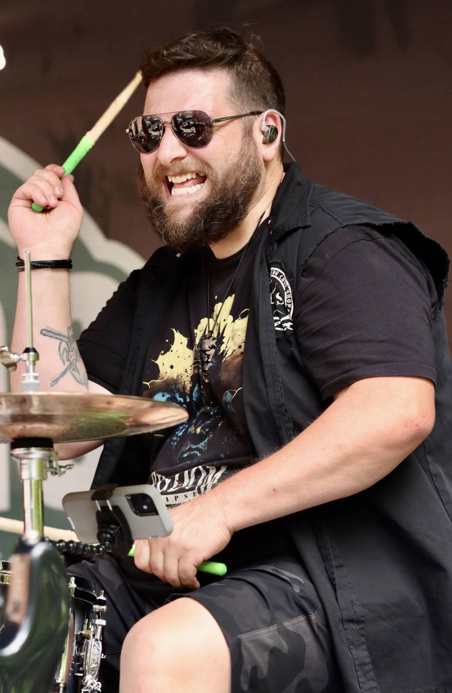 Along with Cymbals from Soultone, Dean also plays Scorpion Percussion drumsticks, Roland electronic drums, Pearl pedals, and a mix of hardware.